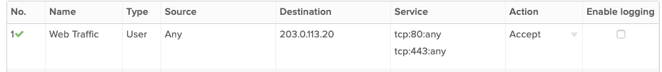 We'll use the same rule as for a routed network, as we intend to use 203.0.113.20 as the "Public IP" of the webserver: