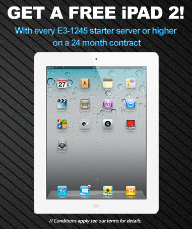 Yes, get your free iPad 2 here! We are giving away one-for-one iPad 2's with every E3-1245 starter series server or higher on a 24 month contract. That means if you buy 10 servers you get 10 iPad 2's!