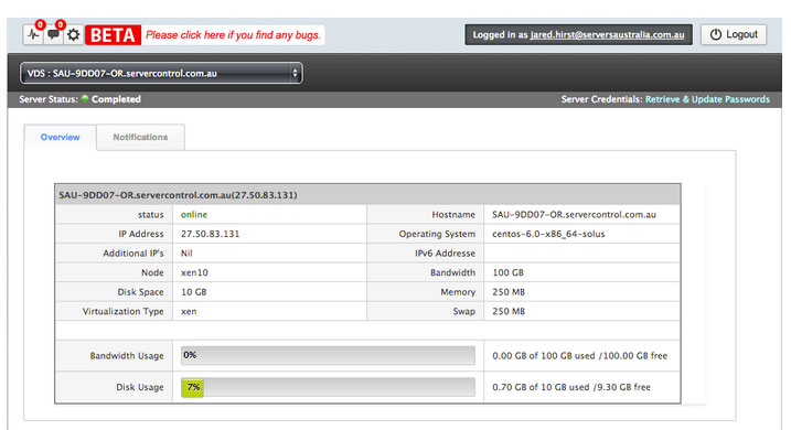 Servers Australia offers our VPS users a complete control panel to manage their VPS, whether you need to reboot your VPS or reload the operating system, this can all be done from the Servers Australia Portal.